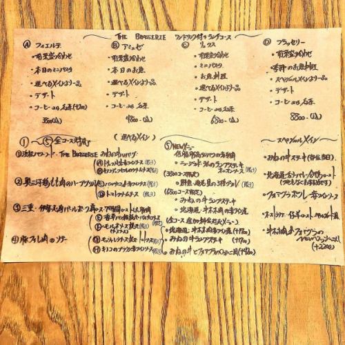 THE BRASSERIE is a European street corner restaurant with a hideaway setting in a quiet residential area.Even today, experienced chefs are working on cooking with great care by sifting their arms.
